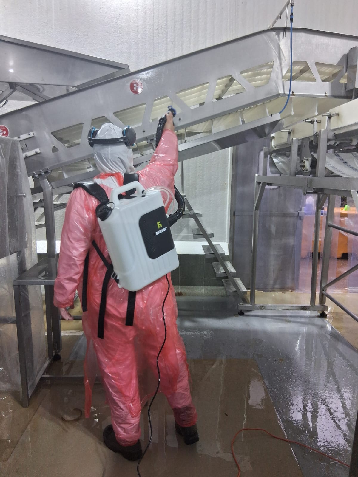 Ejecutamos la limpieza profunda y sanitización de una cámara de frigorífico perteneciente a AquaChile, asegurando un entorno higiénico y seguro para la conservación de productos. Nuestro servicio incluyó la extracción de residuos líquidos y sólidos, aplicación de desinfectantes autorizados y protocolos de sanitización especializados, con el objetivo de cumplir los estándares exigidos por la industria acuícola. Gracias al trabajo de nuestro equipo capacitado y al uso de maquinaria adecuada, garantizamos un proceso eficiente que minimizó los riesgos ambientales y optimizó las condiciones de higiene en la faena.