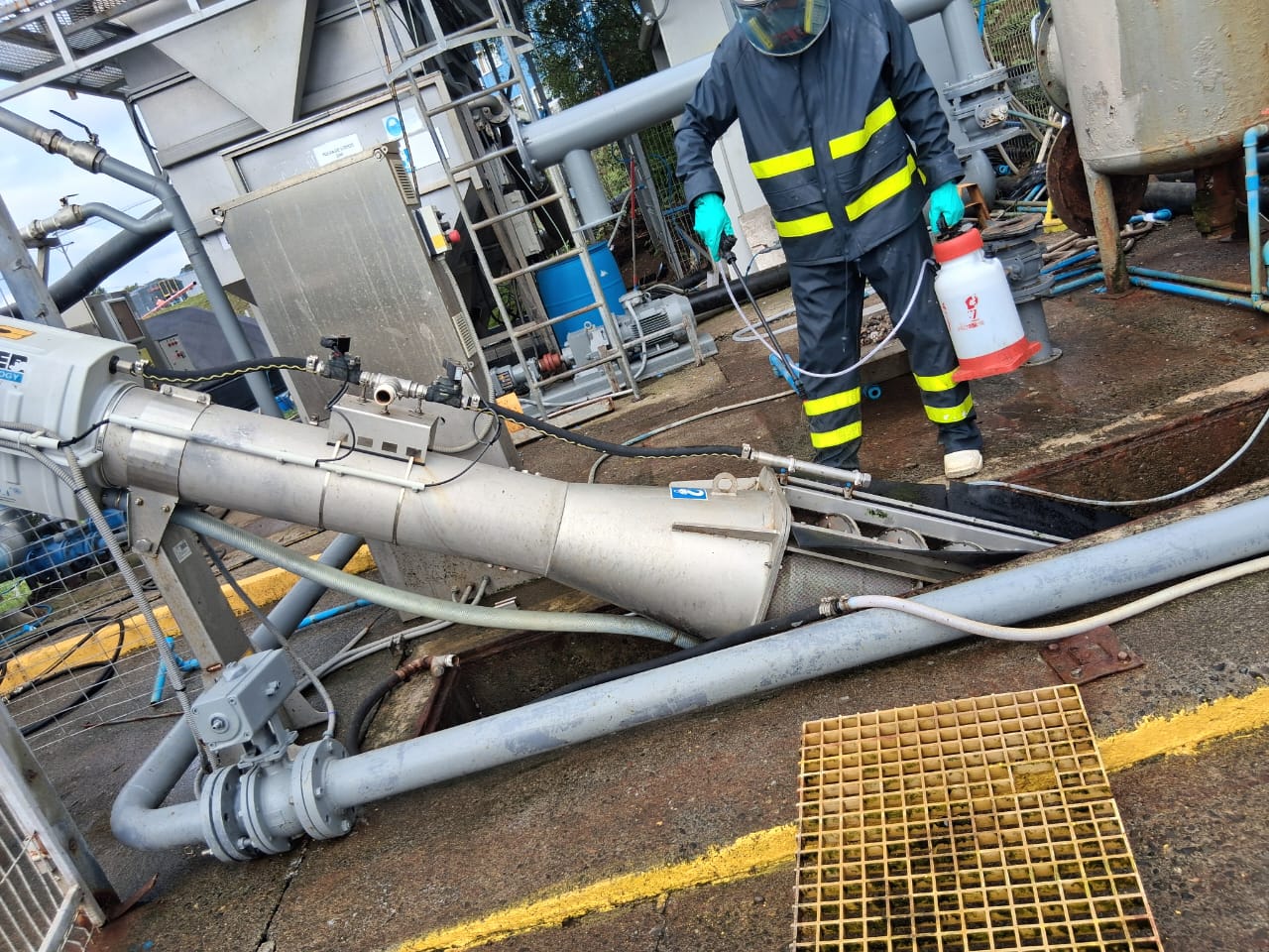 El 11 de abril de 2025, Soluciones Chiloé realizó un mantenimiento preventivo en la planta de RILES de AquaChile, en el marco del cierre de temporada. El servicio incluyó: Medición de gases en cada estanque para garantizar condiciones seguras antes de la intervención. Limpieza completa de todos los estanques de la planta, con aplicación de detergente alcalino y desinfectante concentrado al 15%. Desinfección final mediante fumigadora industrial. Retiro de 44 m³ de lodos acumulados mediante camión limpia fosas Mercedes de 10 m³, realizando varias vueltas hasta completar el vaciado. El trabajo se ejecutó exitosamente cumpliendo protocolos de higiene y seguridad, sin incidentes reportados. Se recomienda mantener un calendario regular de limpieza post-temporada y revisar la escalera del estanque de 100.000 litros, ya que presenta óxido.